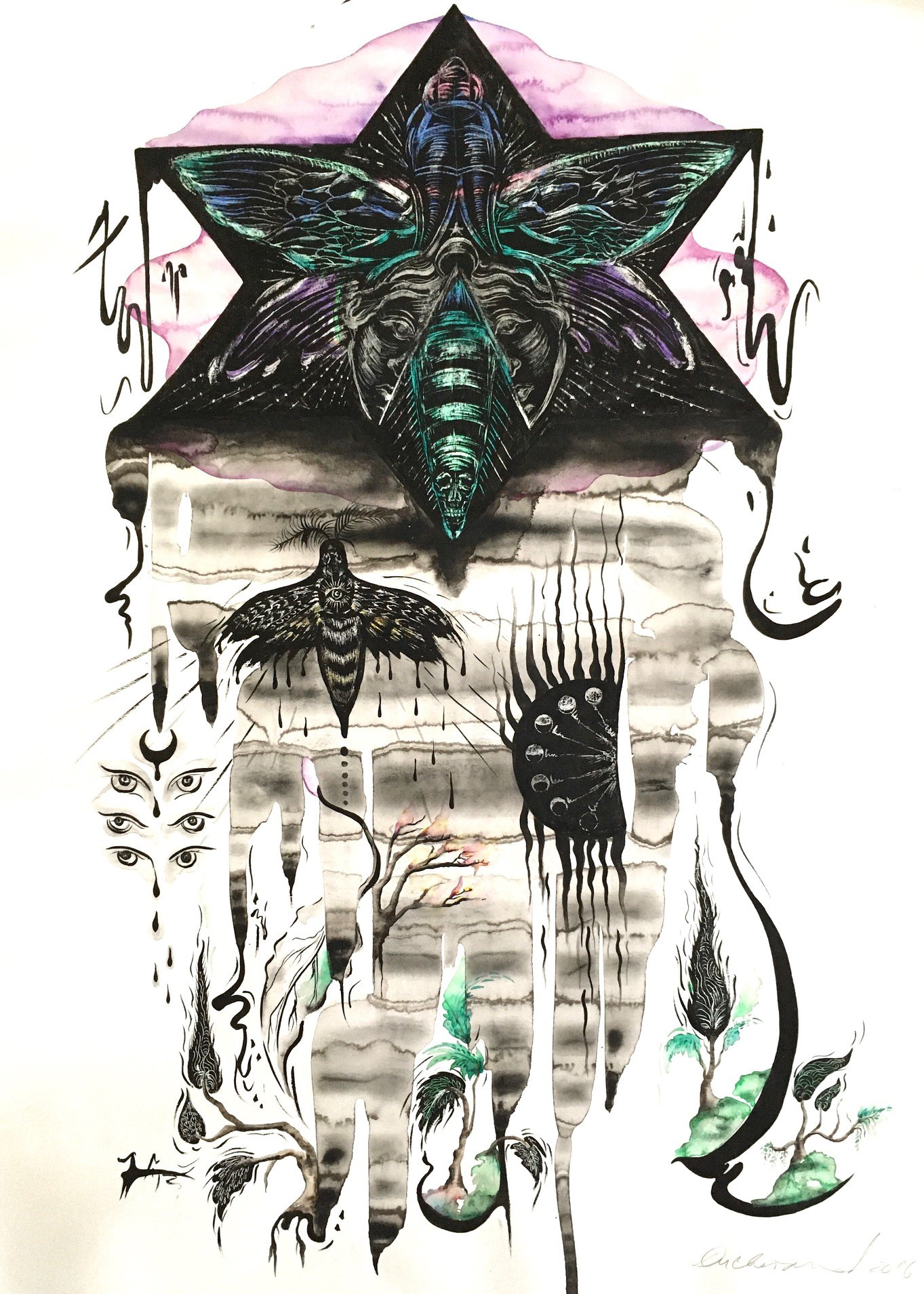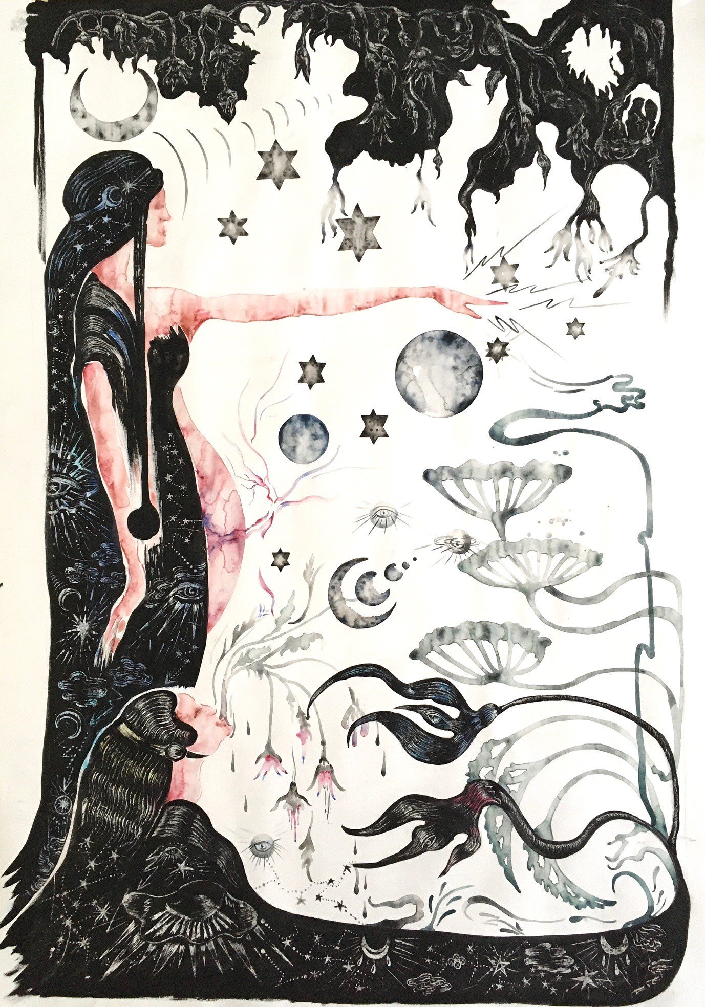 Night moth 2016 , watercolor an mixed technique on paper, 120 x80 cm