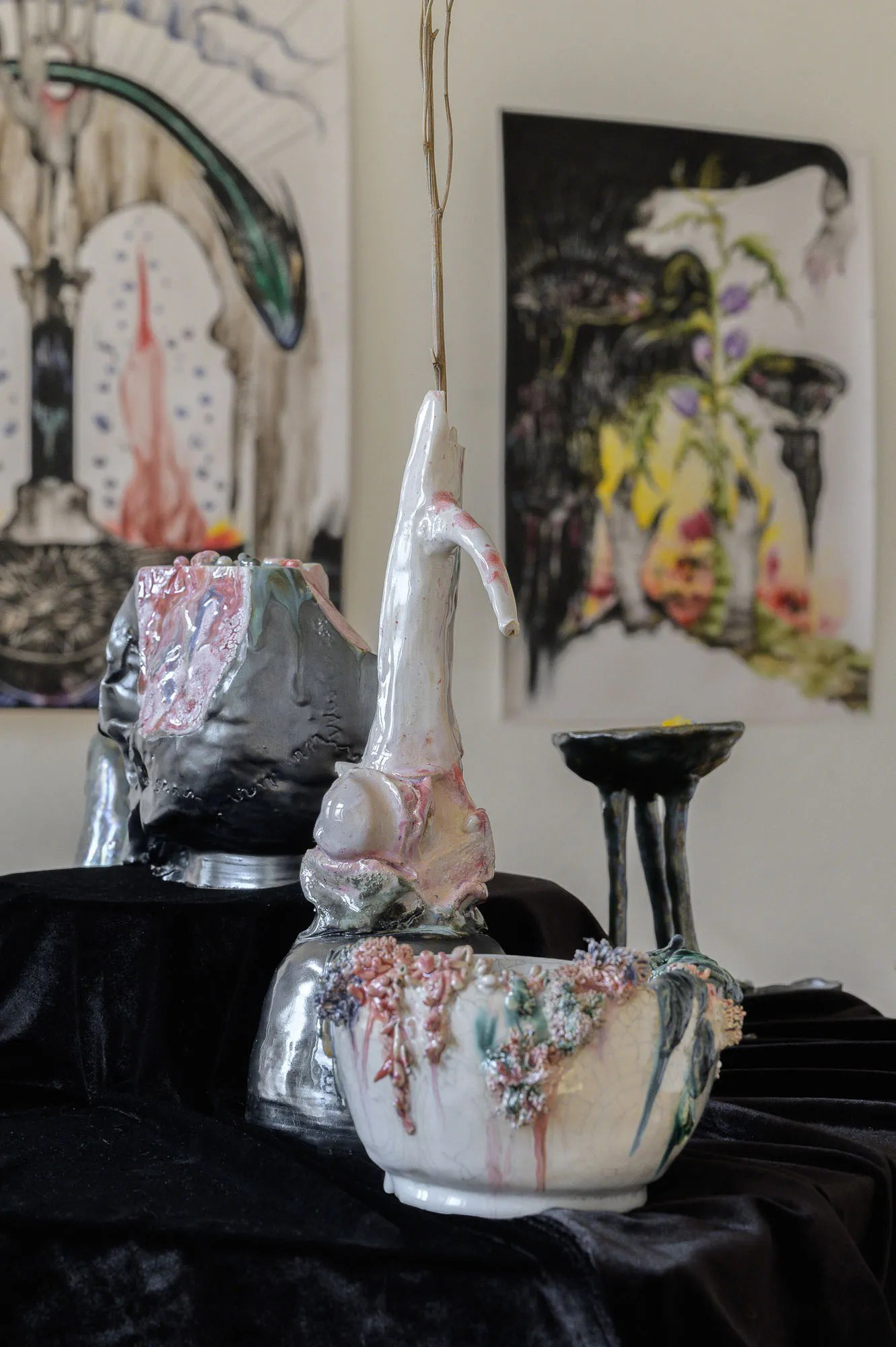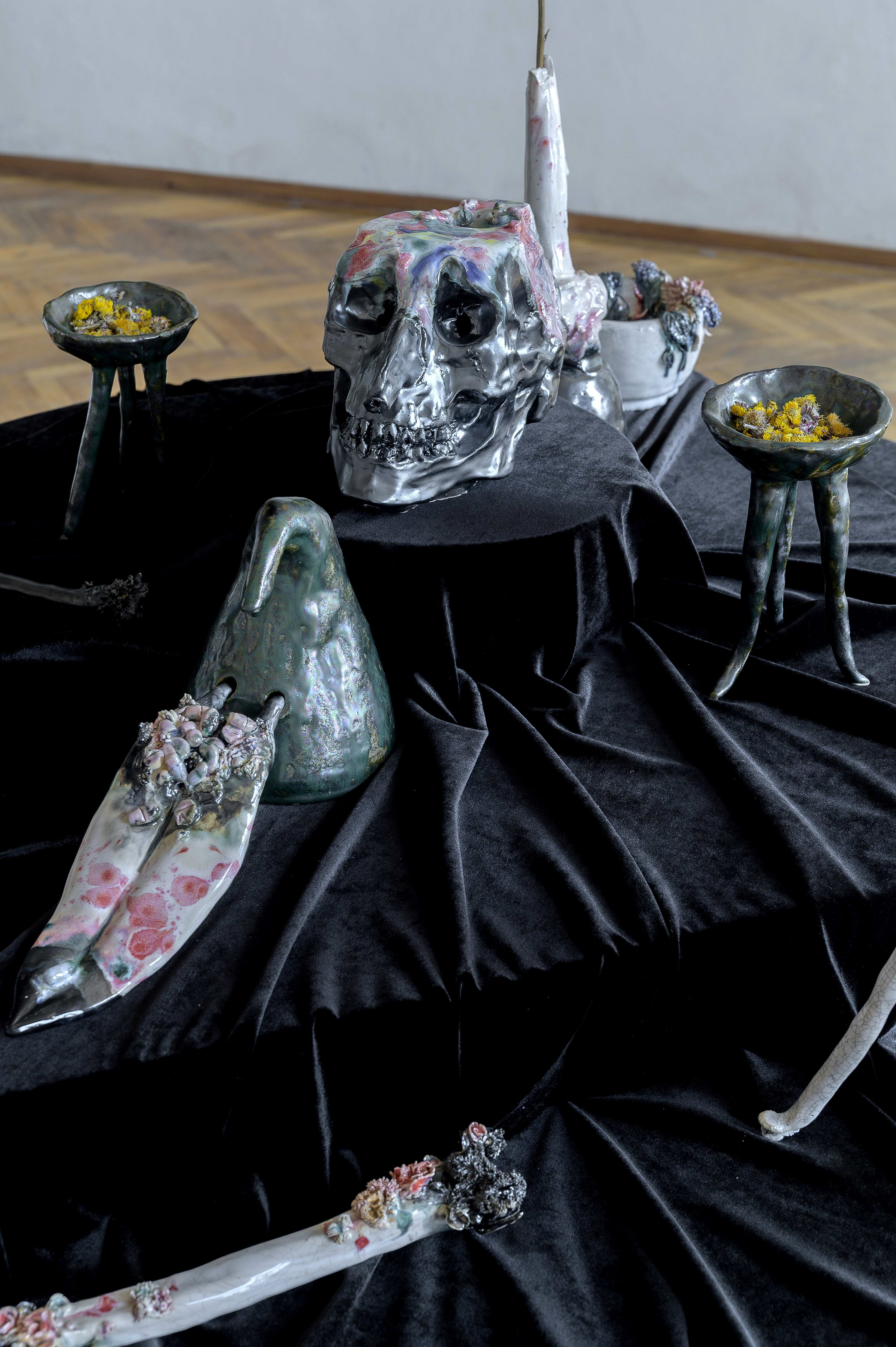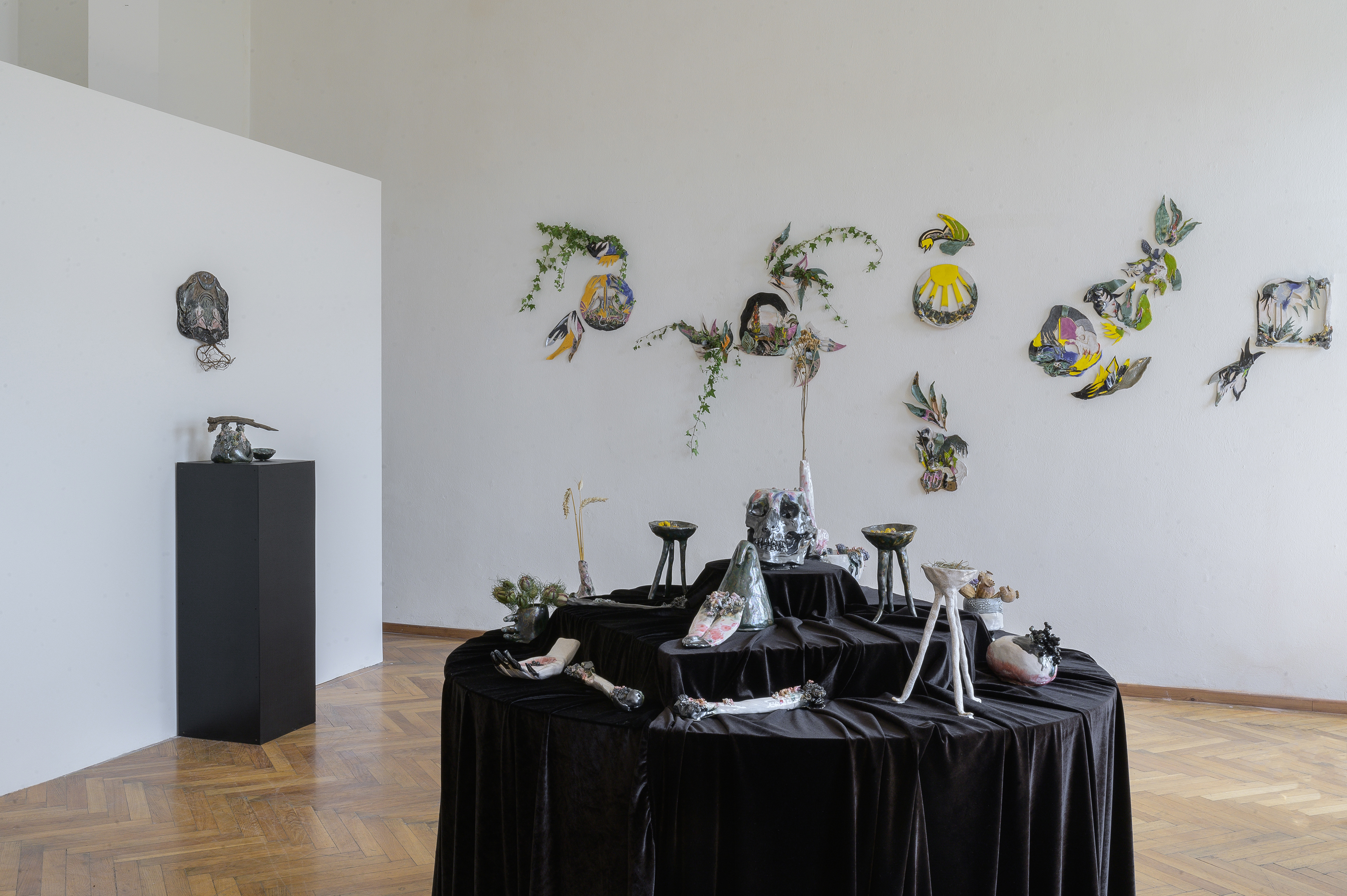 Materia prima je v alchýmii prvotnou látkou – pralátkou. Výstava akcentuje témy spojené s obrodou vlastnej spirituality a kultom zdravia, ktoré sa v obecnom podvedomí západnej spoločnosti trvale usídlili a v krajných prípadoch naberajú aj znaky posadnutosti. „Vynájsť“ recept na správnu kombináciu starostlivosti o vlastnú dušu, myseľ a telesné zdravie komplikuje v globalizovanej spoločnosti aj zhustený informačný tok ponúk a nepreberné množstvo autorít. V tomto výstavnom projekte predstavujú tieto javy metaforu vizuálneho zhmotnenia transcendentálnych javov, smerujúcich z osobnej sféry do sféry verejnej. Imperatív zdravia dnes expanduje z privátneho do politicko-ekonomického priestoru. Prirodzeným javom v ére technológií je pokles intuície a duchovnej podstaty človeka. Doba globalizácie zase ponúka jedincovi snažiacemu sa o obrodu svojej spirituality obrovské množstvo možností a ciest. Instantné informácie z internetu kumulujú zlepenec hodnôt inšpirovaný rôznymi kultúrami a civilizáciami, kde sa tisícročné poznanie mení v krátky rešerš dostupný na internetovom prehliadači. Zámerom projektu je vizualizované a zhmotňované skúmanie v rámci tzv. chaosu v duchovných hodnotách, ktorými sa jedinec snaží tíšiť civilizačné problémy akými sú stres, úzkosť či vyčerpanie. Skupina prác preberá na seba úlohu názorných exponátov – ktoré v simulovanej biologickej štruktúre konfrontujú prvky a privlastnené objekty rôzneho pôvodu a vytvárajú z nich celkom nečakané harmonické i disharmonické kompozície.